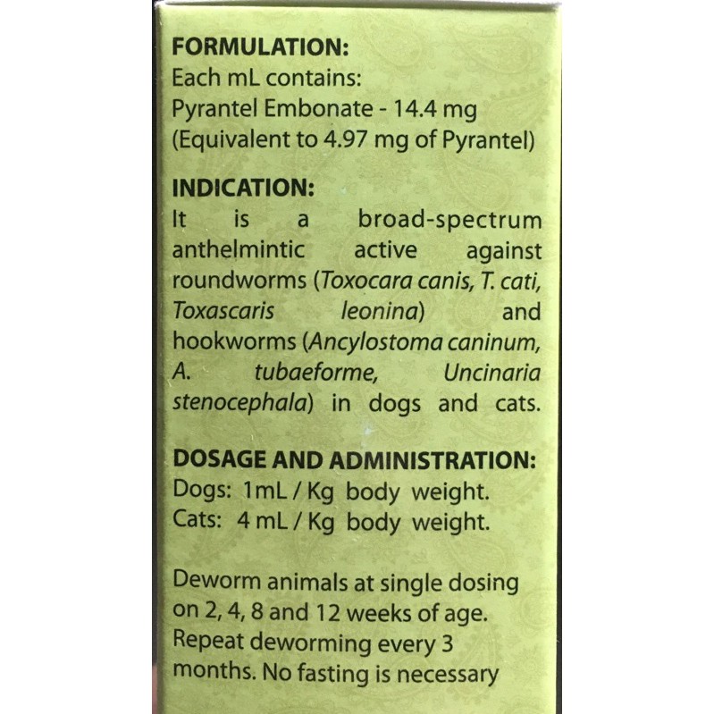 Nematocide Pyrantel Embonate Dewormer For Dogs And Cats 15ml 60ml Shopee Philippines